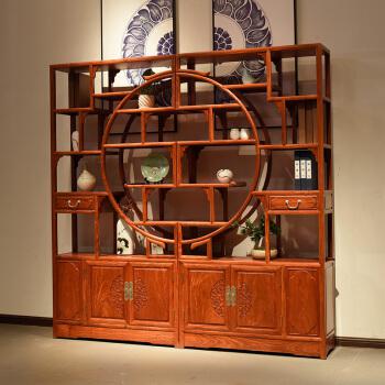 質木匠紅木家具緬甸花梨學名大果紫檀實木書架博古架多寶額置物架儲物架古董架團圓博古架 【團圓博古架】