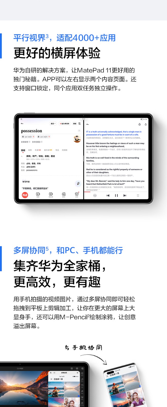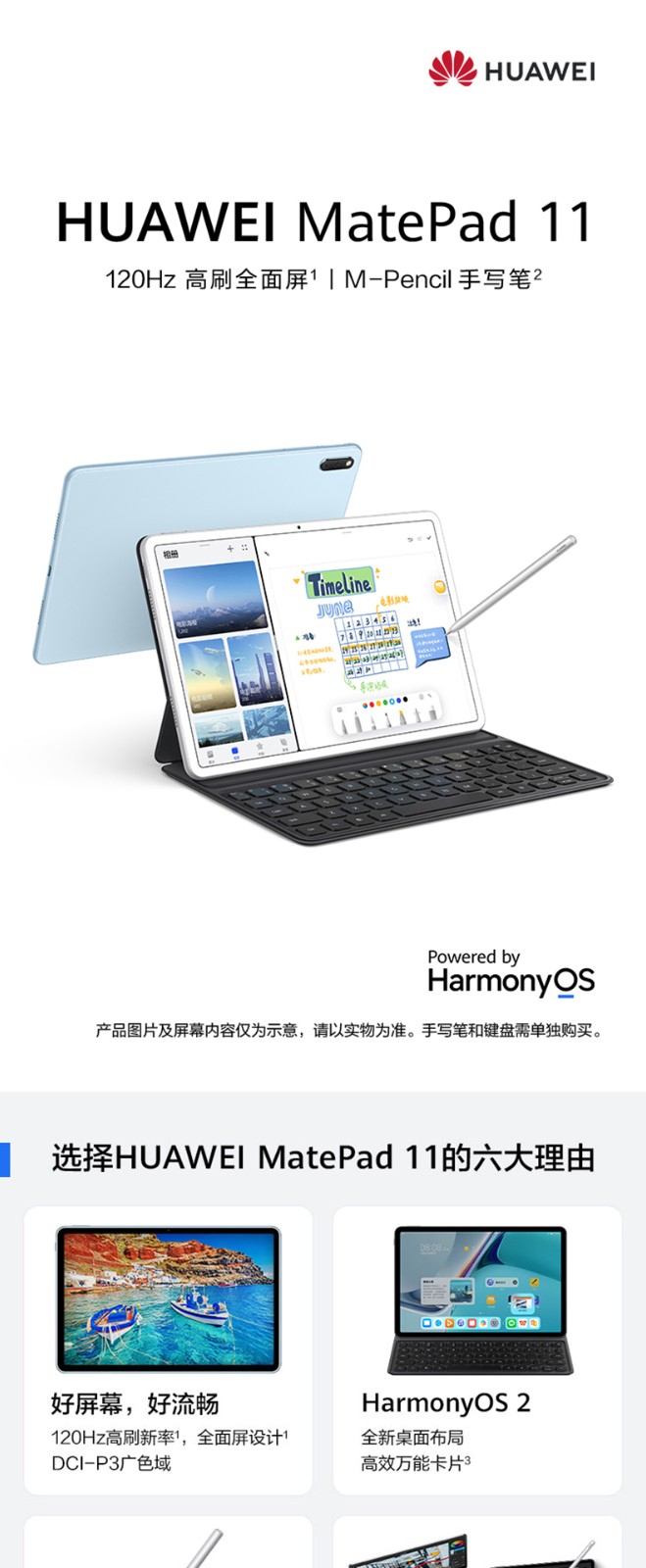 華為/HUAWEI MatePad11新款120Hz高刷全面屏鴻蒙HarmonyOS影音娛樂學(xué)習(xí)辦公平板電腦內(nèi)存 前黑后海鳥藍(lán)