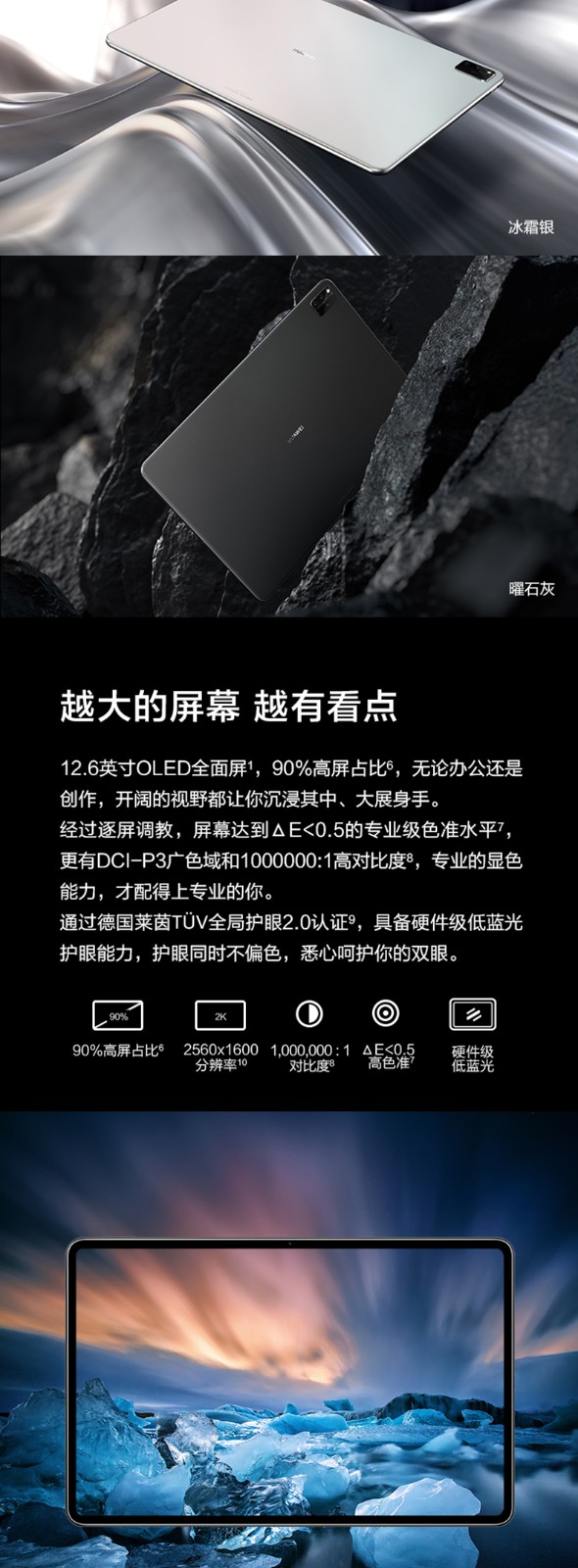 > 計算機設(shè)備 > 平板式微型計算機 > 華為HUAWEI MatePad Pro 12.6英寸鴻蒙HarmonyOS系統(tǒng)OLED屏幕平板電腦學(xué)習(xí)8GB12GB內(nèi)存 前白后冰霜銀