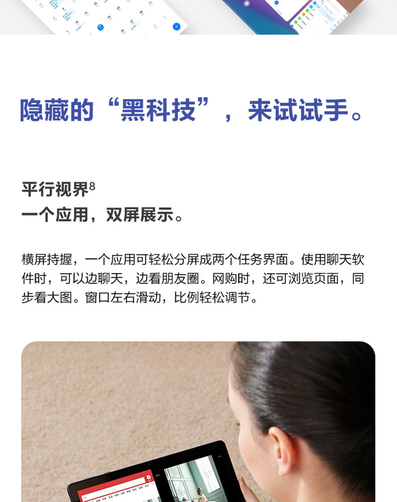 規(guī)格參數 其他屬性 售后服務 全國聯(lián)保 電信設備進網許可證編號 17-5043-201324 處理器品牌 海思 存儲 存儲類型 EMMC 內存容量 4GB 存儲容量 4GB+64GB 4GB+128GB 顯示 分辨率 1920x1200 觸摸屏類型 IPS 十點觸控電容屏 像素 200萬 屏幕尺寸 10.1英寸 后置攝像頭像素 500萬 基本參數 品牌 Huawei/華為 型號 暢享平板2 接口類型 Nano-SIM 卡接口(僅全網通版本支持),3.5mm耳機接口,USB Type-C接口 核心數 八核心 顏色分類 香檳金 深海藍 CPU主頻 4×Cortex A73 2.0GHz + 4×Cortex A53 1.7GHz 廠商 華為 處理器構架 Cortex-A73 Based 處理器型號信息 Kirin710A(海思麒麟710A) 熱門功能 全高清屏幕,大振幅揚聲器,哈曼卡頓調音,教育中心,平行視界,暢連通話 操作系統(tǒng) EMUI 10.1(基于Android 10) 網絡 網絡類型 全網通 WIFI