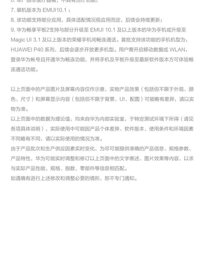 規(guī)格參數(shù) 其他屬性 售后服務(wù) 全國聯(lián)保 電信設(shè)備進(jìn)網(wǎng)許可證編號 17-5043-201324 處理器品牌 海思 存儲 存儲類型 EMMC 內(nèi)存容量 4GB 存儲容量 4GB+64GB 4GB+128GB 顯示 分辨率 1920x1200 觸摸屏類型 IPS 十點(diǎn)觸控電容屏 像素 200萬 屏幕尺寸 10.1英寸 后置攝像頭像素 500萬 基本參數(shù) 品牌 Huawei/華為 型號 暢享平板2 接口類型 Nano-SIM 卡接口(僅全網(wǎng)通版本支持),3.5mm耳機(jī)接口,USB Type-C接口 核心數(shù) 八核心 顏色分類 香檳金 深海藍(lán) CPU主頻 4×Cortex A73 2.0GHz + 4×Cortex A53 1.7GHz 廠商 華為 處理器構(gòu)架 Cortex-A73 Based 處理器型號信息 Kirin710A(海思麒麟710A) 熱門功能 全高清屏幕,大振幅揚(yáng)聲器,哈曼卡頓調(diào)音,教育中心,平行視界,暢連通話 操作系統(tǒng) EMUI 10.1(基于Android 10) 網(wǎng)絡(luò) 網(wǎng)絡(luò)類型 全網(wǎng)通 WIFI