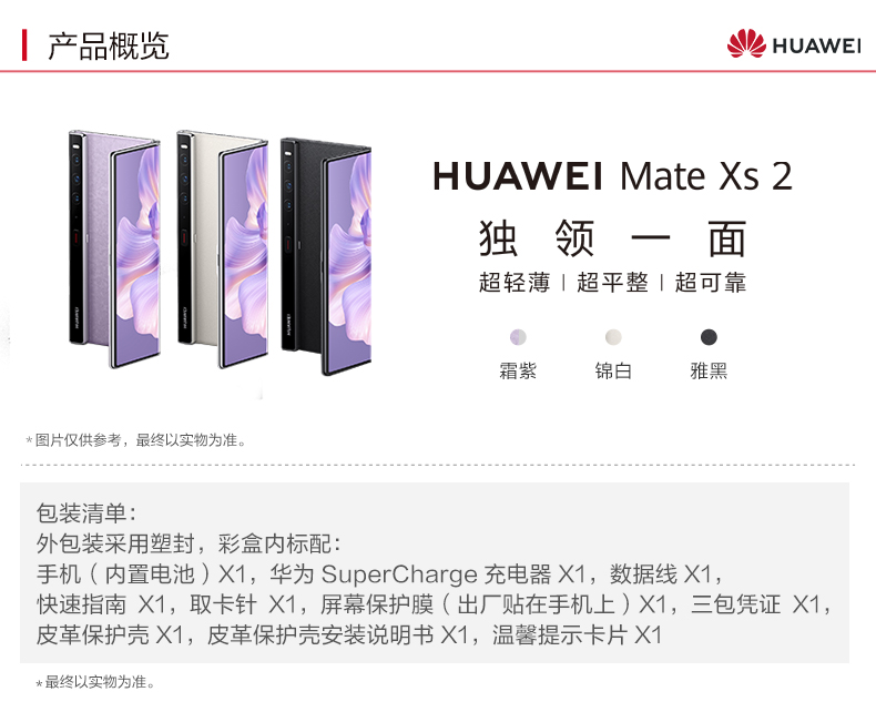 華為/HUAWEI Mate Xs 2 新款折疊屏手機(jī)超輕薄超平整超可靠鴻蒙全新大屏體驗(yàn)華為官方旗艦店 雅黑色