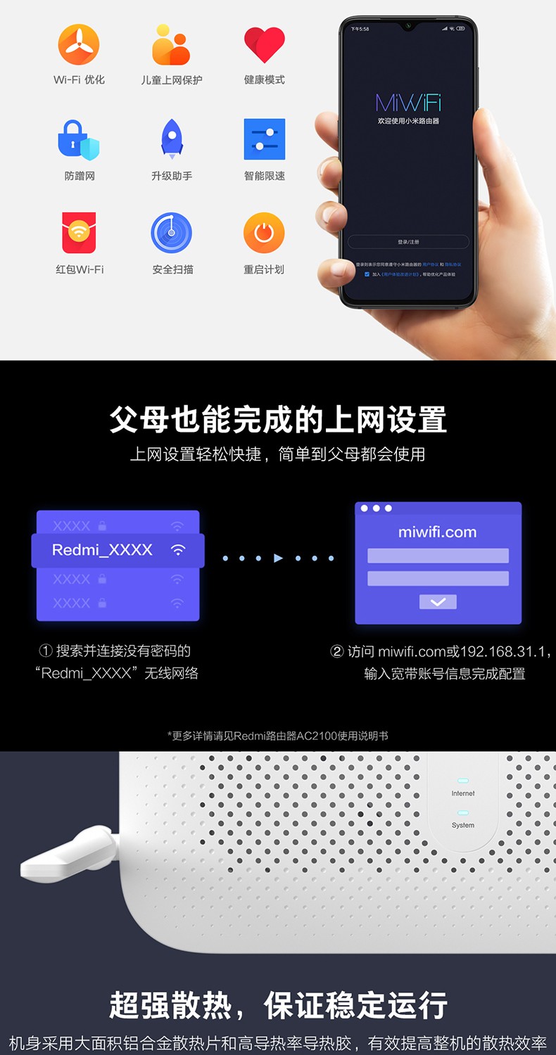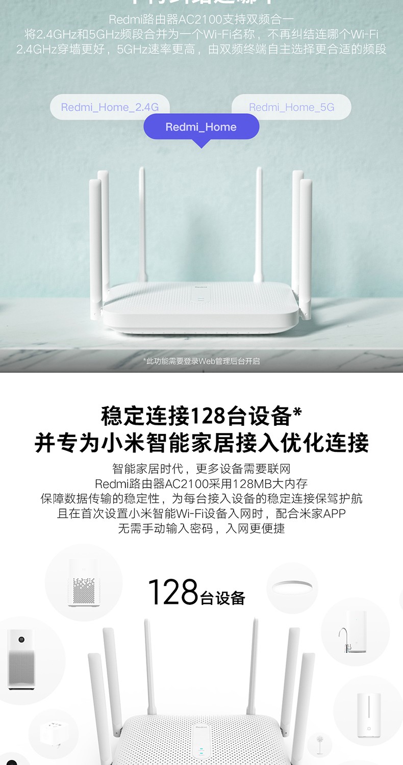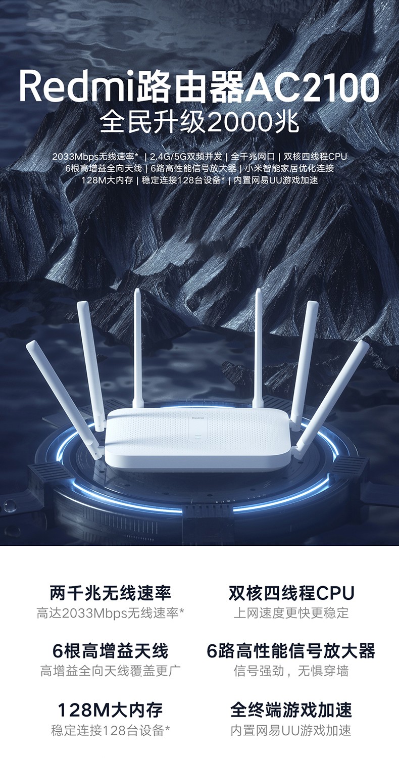 小米Redmi路由器AC2100家用千兆端口5G雙頻2000M無線速率wifi游戲加速會(huì)員高速大戶型