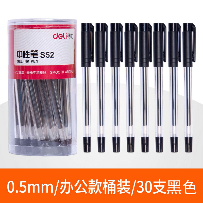 30支黑色-得力文具中性筆學(xué)生用黑色0.5mm子彈頭水筆藍(lán)紅簽字筆批改筆記賬筆辦公用品書寫工具碳素筆50/12支裝