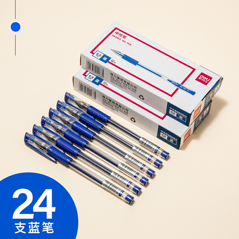 24支藍(lán)色-得力中性筆0.5黑色水筆簽字筆碳素筆12支學(xué)生用文具用品藍(lán)黑筆辦公簽名筆水性筆紅筆考試黑筆圓珠筆辦公用品