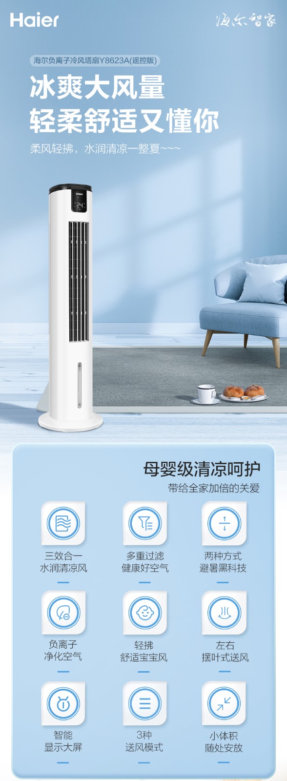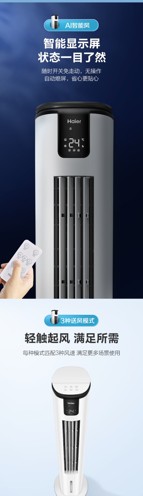 白色-海爾空調(diào)扇制冷電風(fēng)扇加水冷風(fēng)機(jī)塔扇家用宿舍租房神器移動小空調(diào)