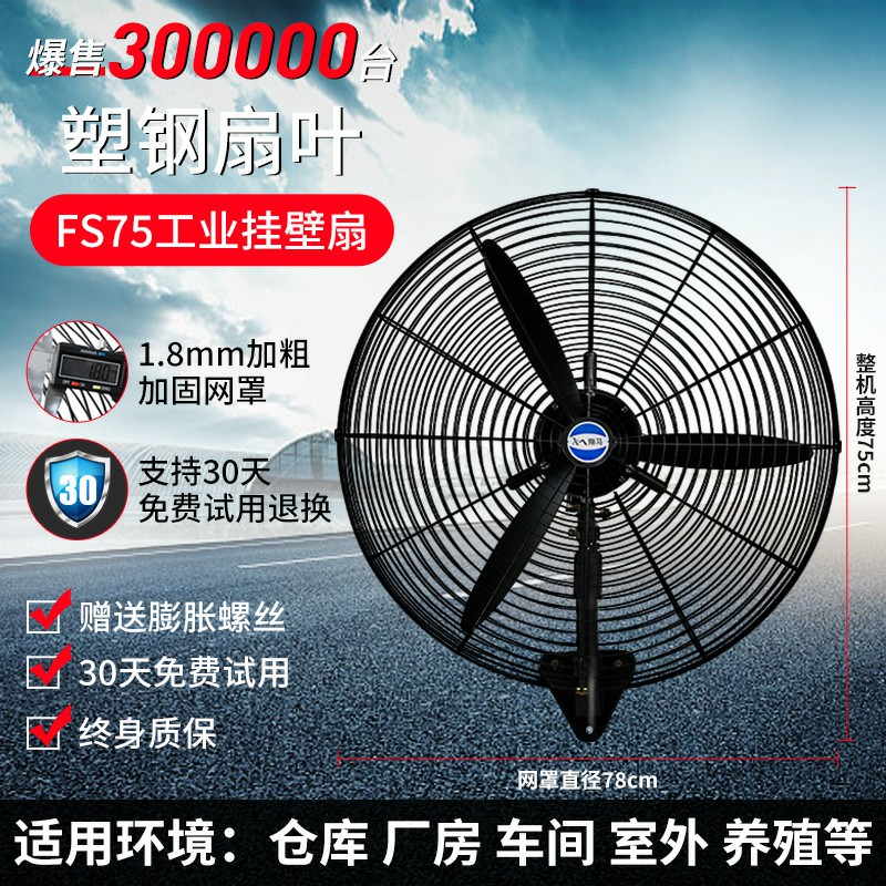 fs75-塑鋼扇葉-掛壁式-工業(yè)電風(fēng)扇強力落地扇大風(fēng)量牛角扇商用機械大功率車間工廠壁掛扇