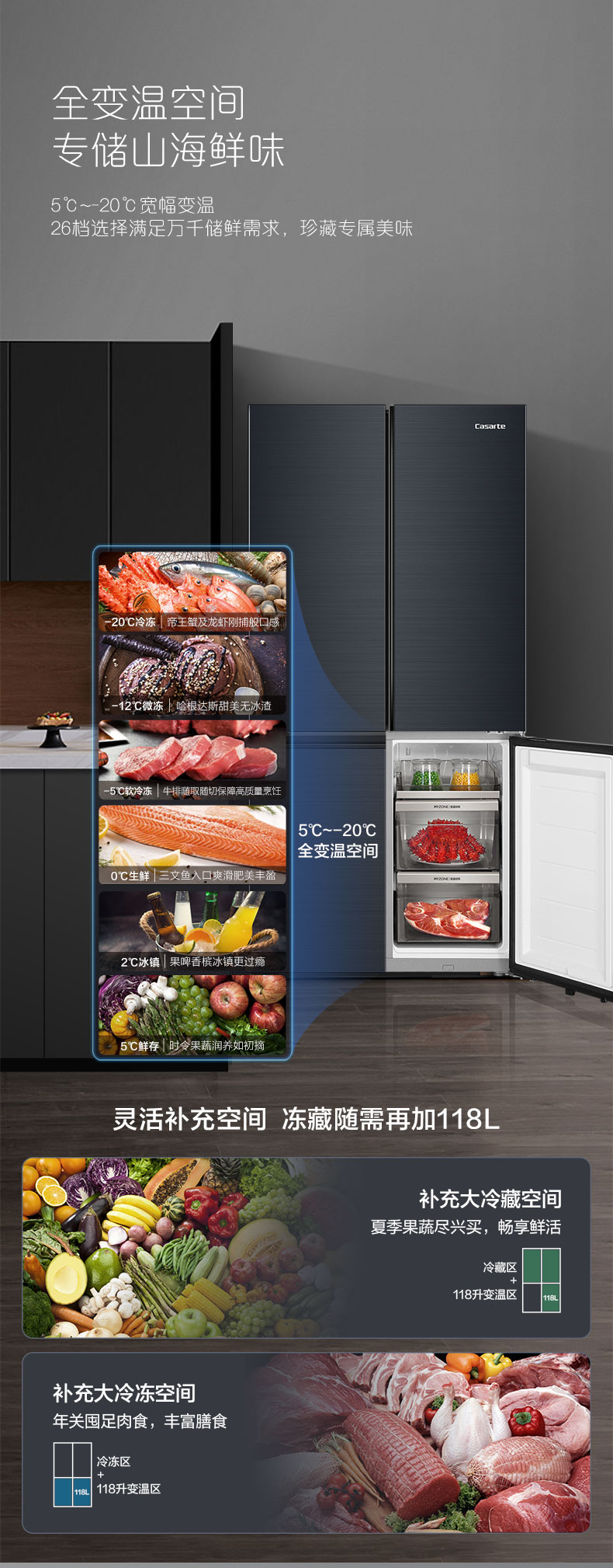 Casarte/卡薩帝700L大容量低氧窖藏全變溫雙重殺菌四門冰箱