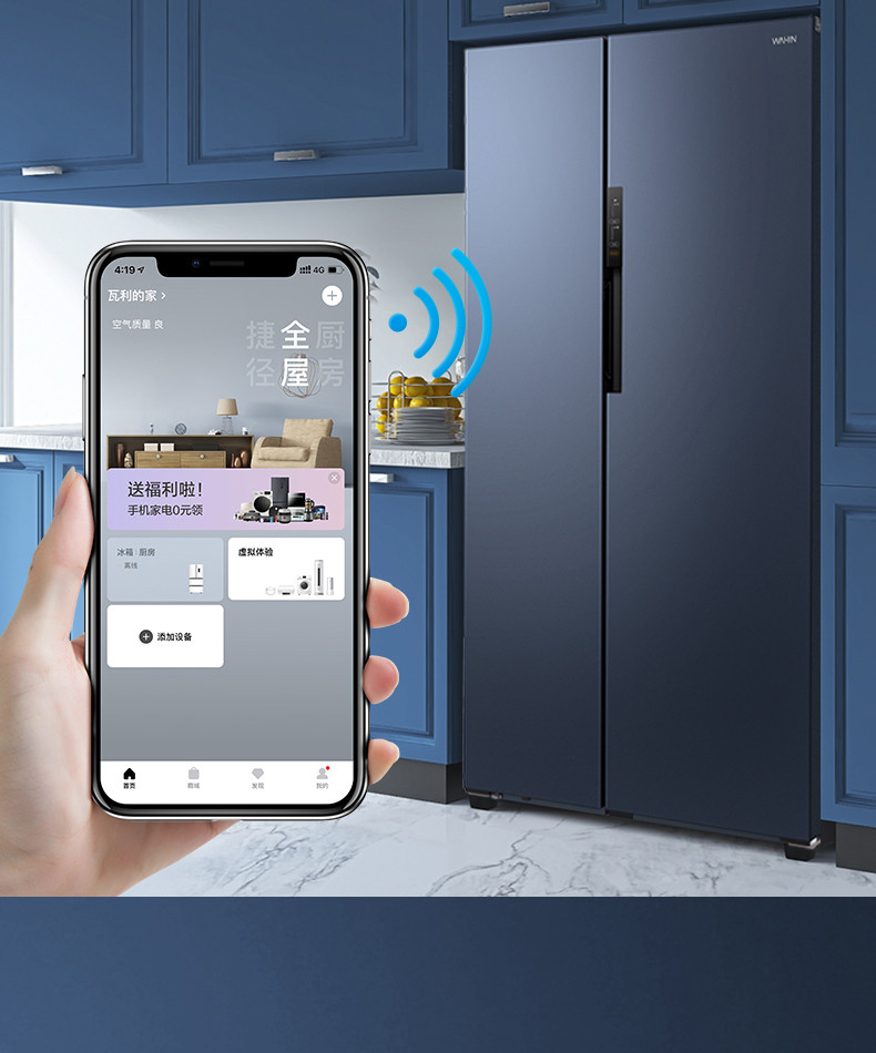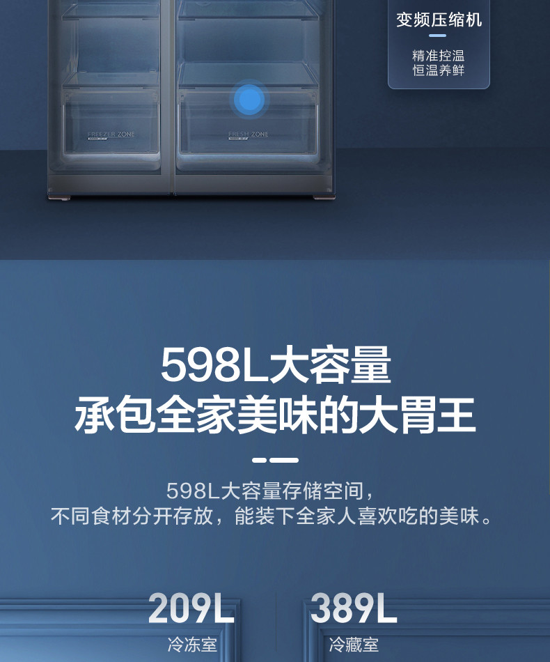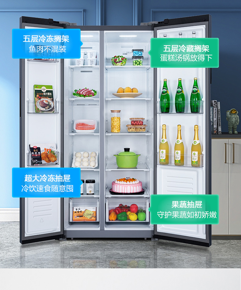 華凌598升雙開門冰箱對開門節(jié)能凈味風冷無霜大容量一級變頻冰箱