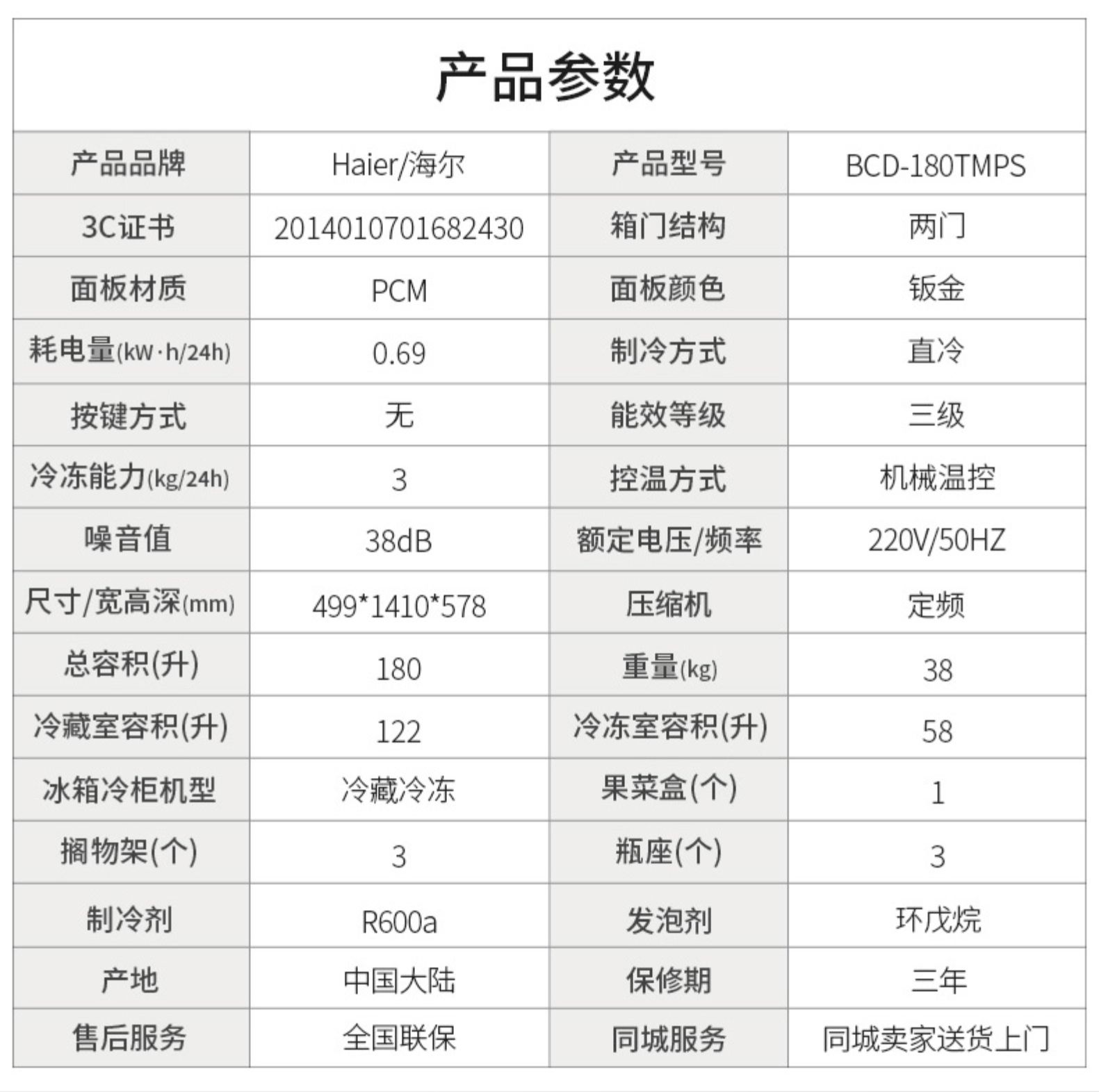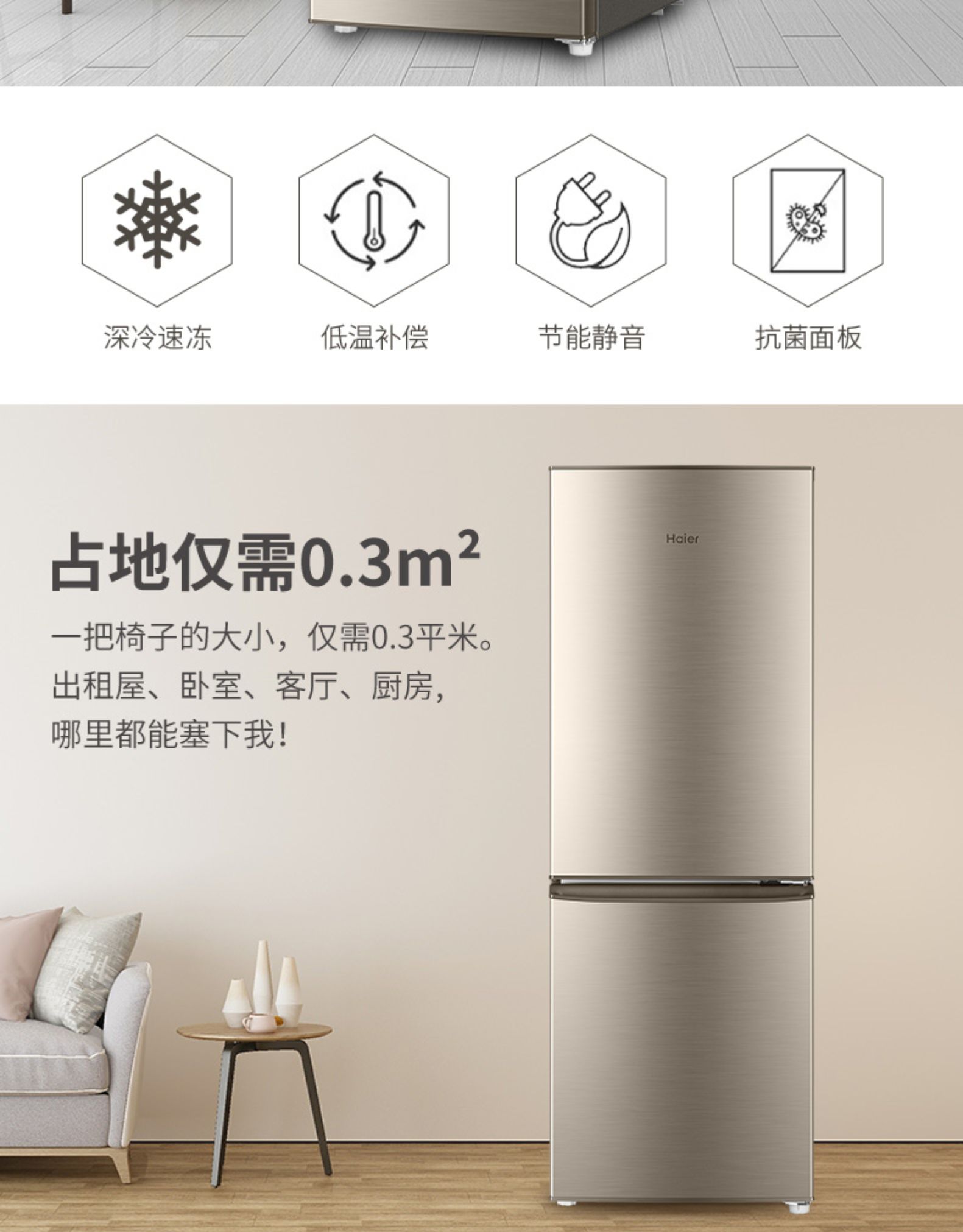 58升-海爾電冰箱兩門180升/118L雙開門家用小型宿舍租房節(jié)能官方旗艦店