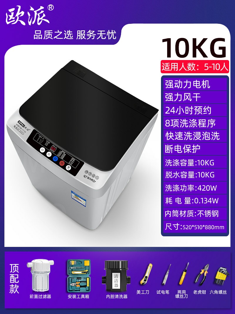 10kg-頂配工具款-歐派洗衣機(jī)全自動波輪10公斤租房家用小型迷你嬰兒烘干脫水一體機(jī)