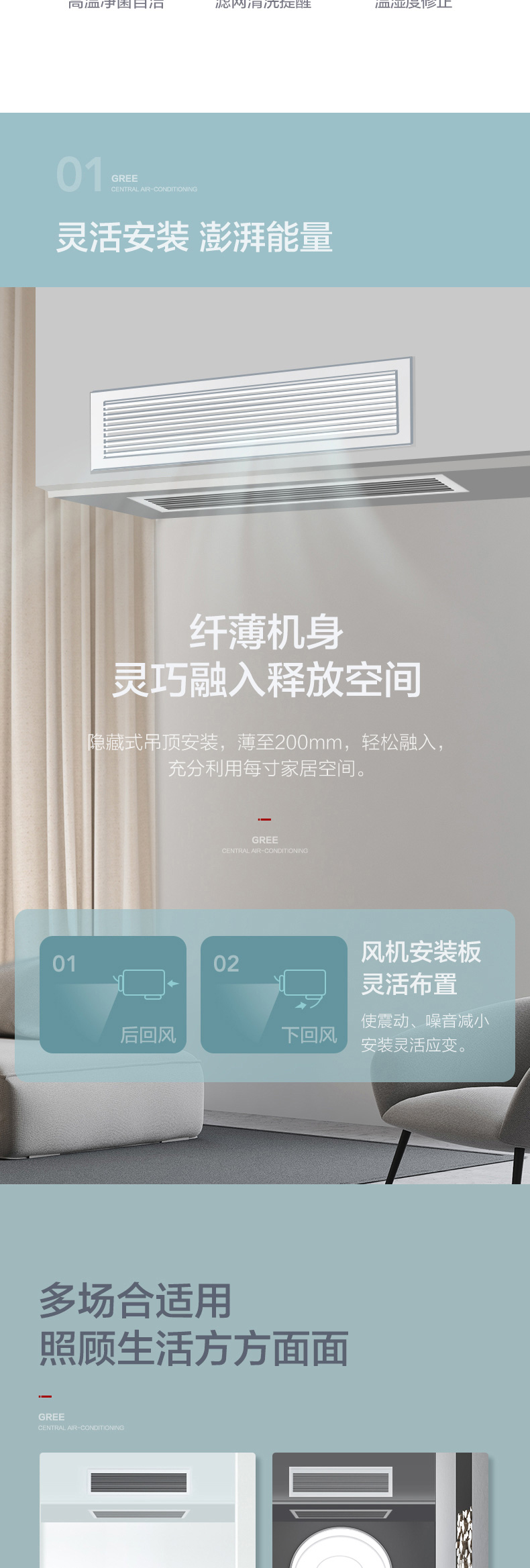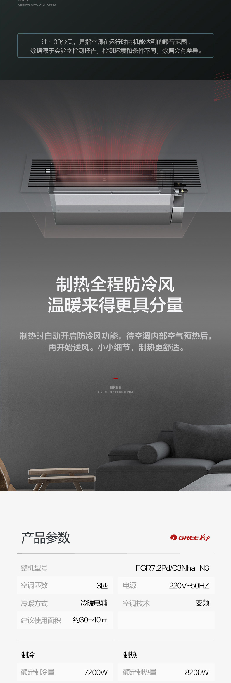 Gree格力家用客廳空調(diào)隱藏安裝3匹一拖一冷暖變頻臥室風(fēng)管機(jī)C3
