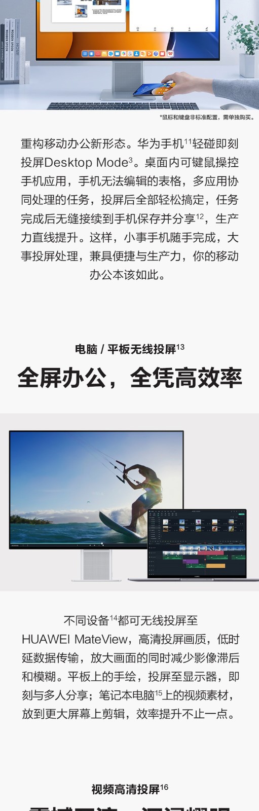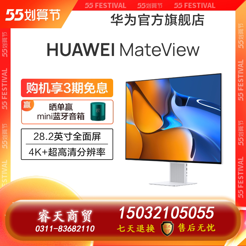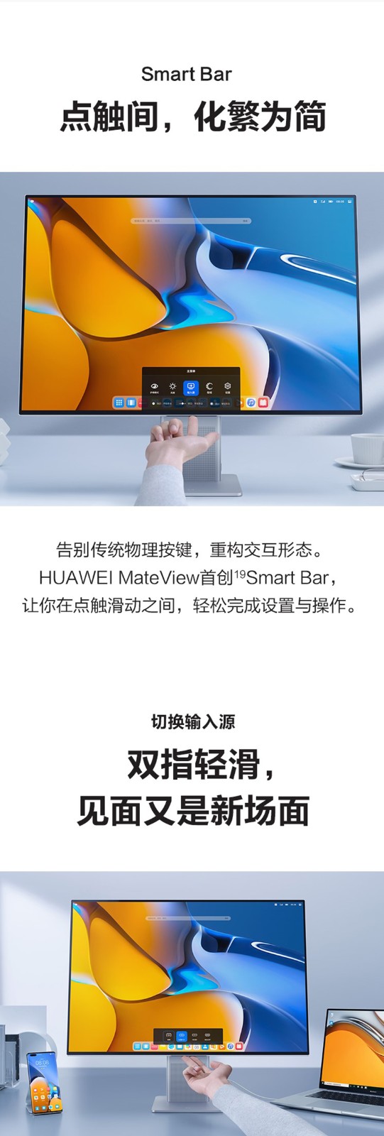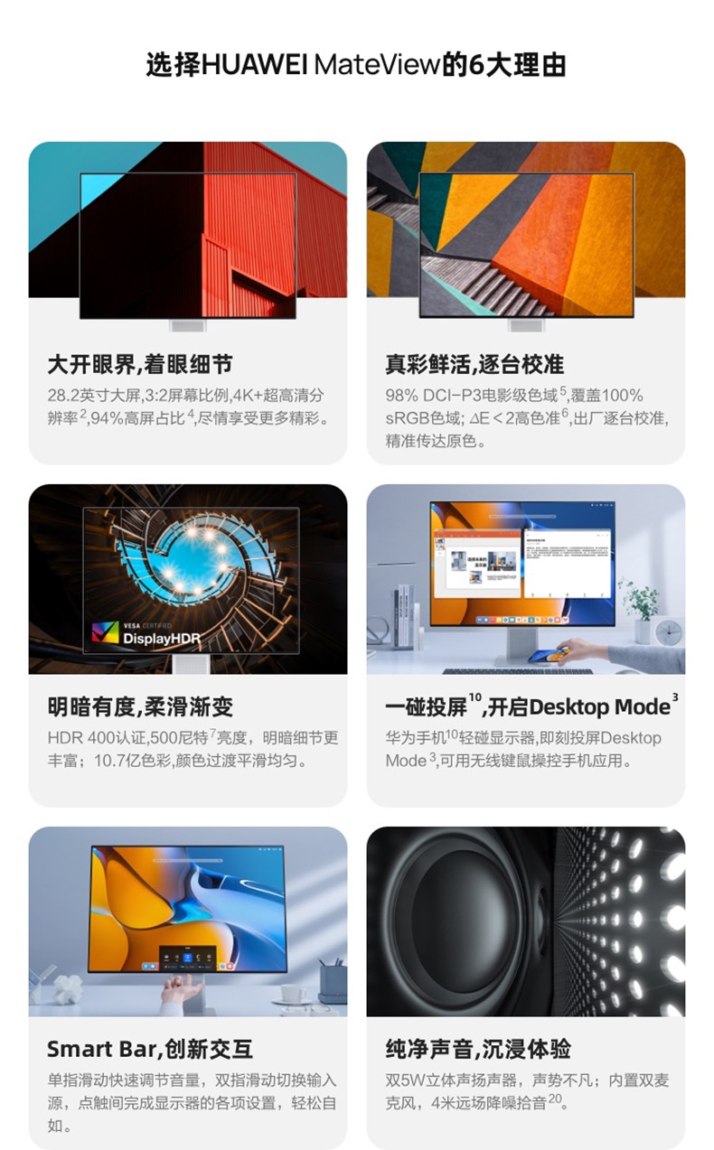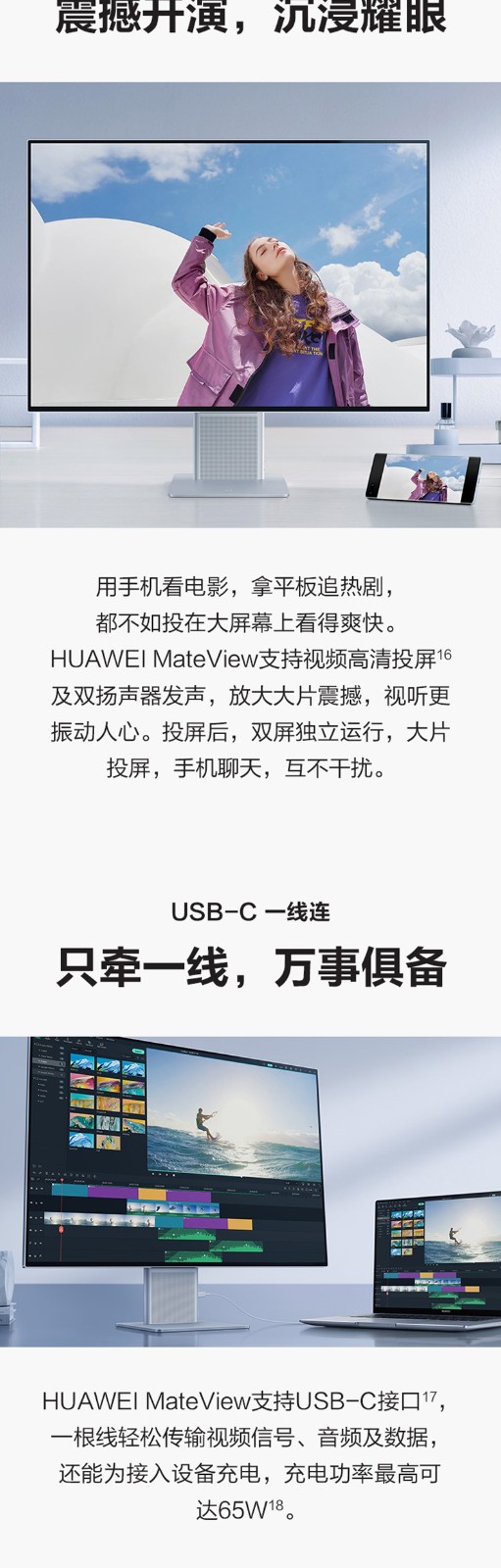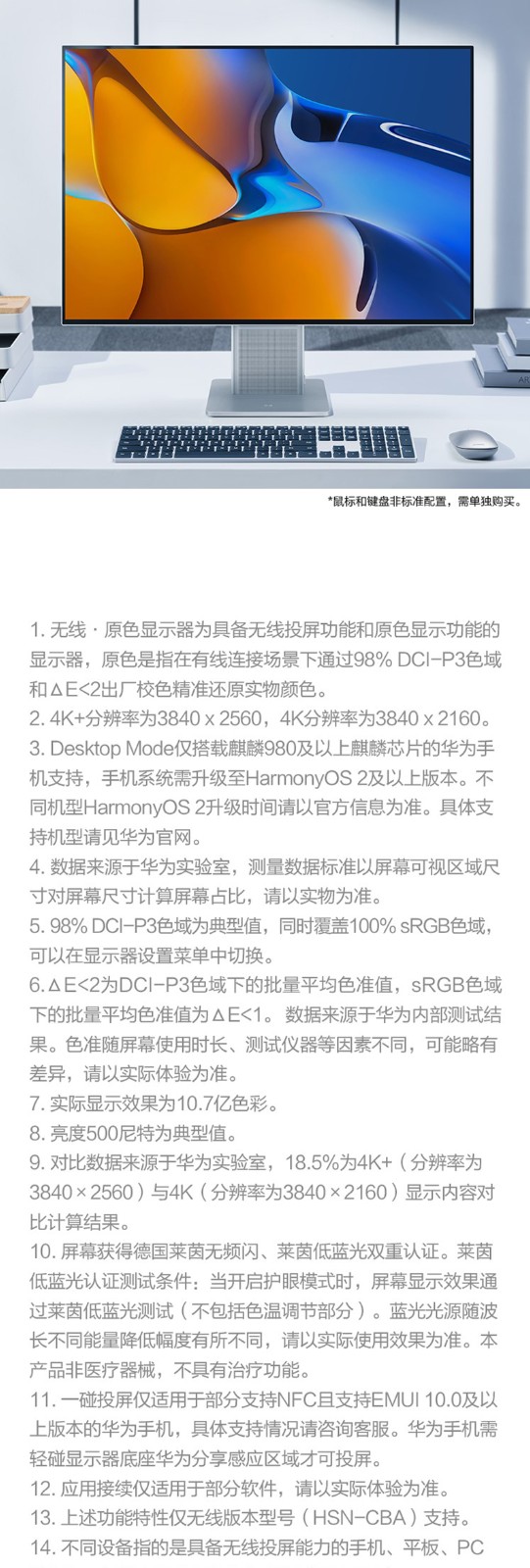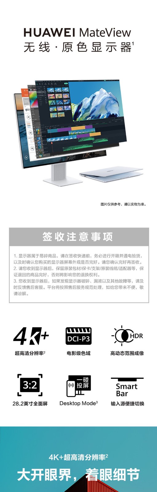 HUAWEI MateView無線原色電腦顯示器窄邊框超薄顯示屏28.2英寸4K+ 無線投屏版 (支持有線投屏/WiFi/藍牙/NFC)