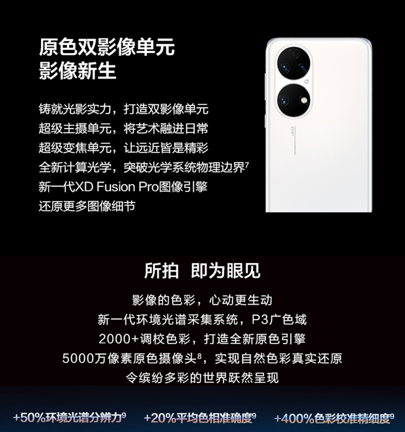 規(guī)格參數(shù) 拍照功能 后置攝像頭 5000萬像素原色攝像頭+ 1300萬像素超廣角攝像頭+ 1200萬像素長焦攝像頭 攝像頭類型 四攝像頭(前一后三) 顯示 分辨率 FHD+ 2700 x 1224 像素 屏幕尺寸 6.5英寸 網(wǎng)絡(luò) 網(wǎng)絡(luò)類型 4G 全網(wǎng)通 網(wǎng)絡(luò)模式 雙卡雙待 機(jī)身詳情 款式 直板 存儲 存儲容量 8+128GB 8+256GB 基本參數(shù) 品牌 Huawei/華為 華為型號 P50 CPU核心數(shù) 八核 機(jī)身顏色 曜金黑 雪域白 可可茶金 手機(jī)類型 智能手機(jī) 操作系統(tǒng) HarmonyOS CPU品牌 高通