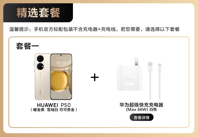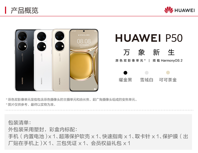 HUAWEI/華為 P50 HarmonyOS2原色雙影像單元新款華為智能手機(jī)新款華為官方旗艦店p50pro 可可茶金