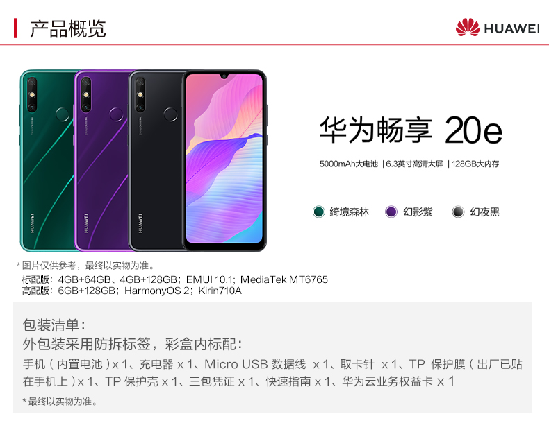 HUAWEI/華為 暢享20e 智能手機(jī)5000mAh大電池高清大屏雙卡雙待新品華為官方旗艦店官網(wǎng)智能手機(jī)老人機(jī)學(xué)生機(jī) 綺境森林