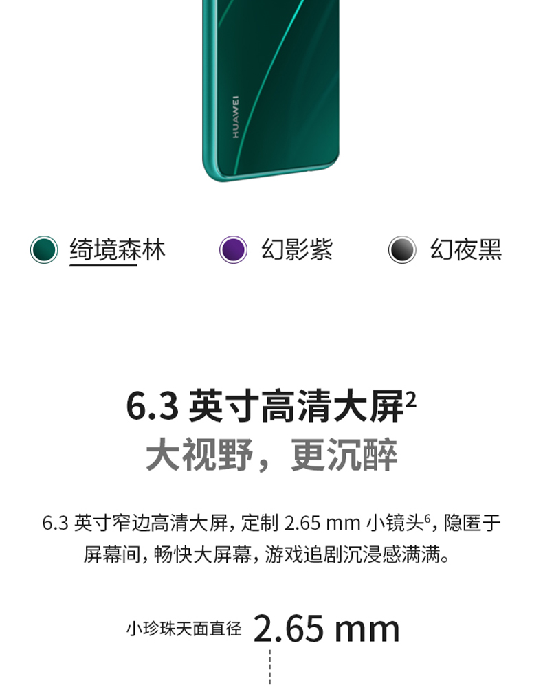 規(guī)格參數(shù) 拍照功能 后置攝像頭 1300萬(wàn)像素?cái)z像頭+200萬(wàn)像素?cái)z像頭 攝像頭類(lèi)型 三攝像頭(后雙) 顯示 分辨率 HD+1600x720像素 屏幕尺寸 6.3英寸 網(wǎng)絡(luò) 網(wǎng)絡(luò)類(lèi)型 4G全網(wǎng)通 網(wǎng)絡(luò)模式 雙卡雙待 機(jī)身詳情 款式 直板 存儲(chǔ) 存儲(chǔ)容量 4+64GB 4+128GB 6+128GB 基本參數(shù) 品牌 Huawei/華為 華為型號(hào) 暢享 20e 機(jī)身顏色 綺境森林 幻影紫 幻夜黑 手機(jī)類(lèi)型 智能手機(jī) CPU品牌 聯(lián)發(fā)科