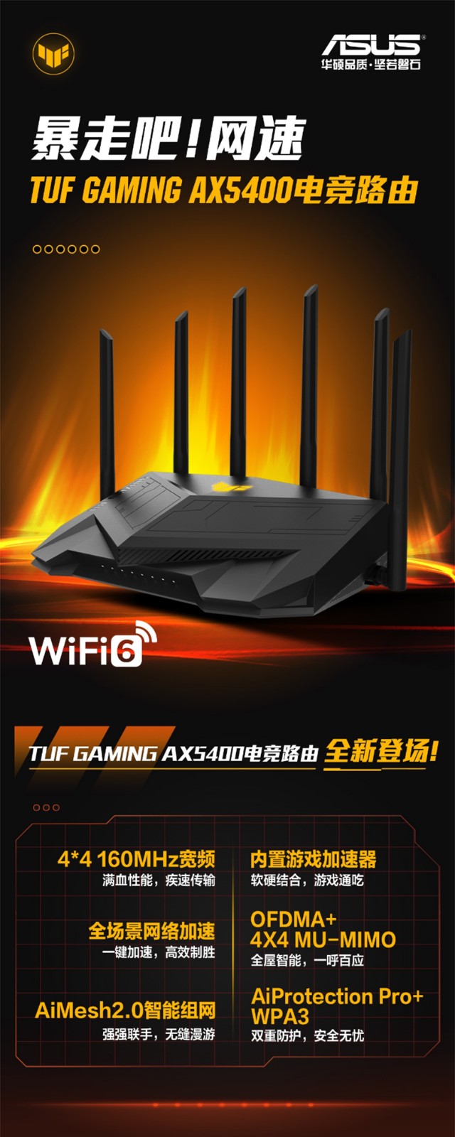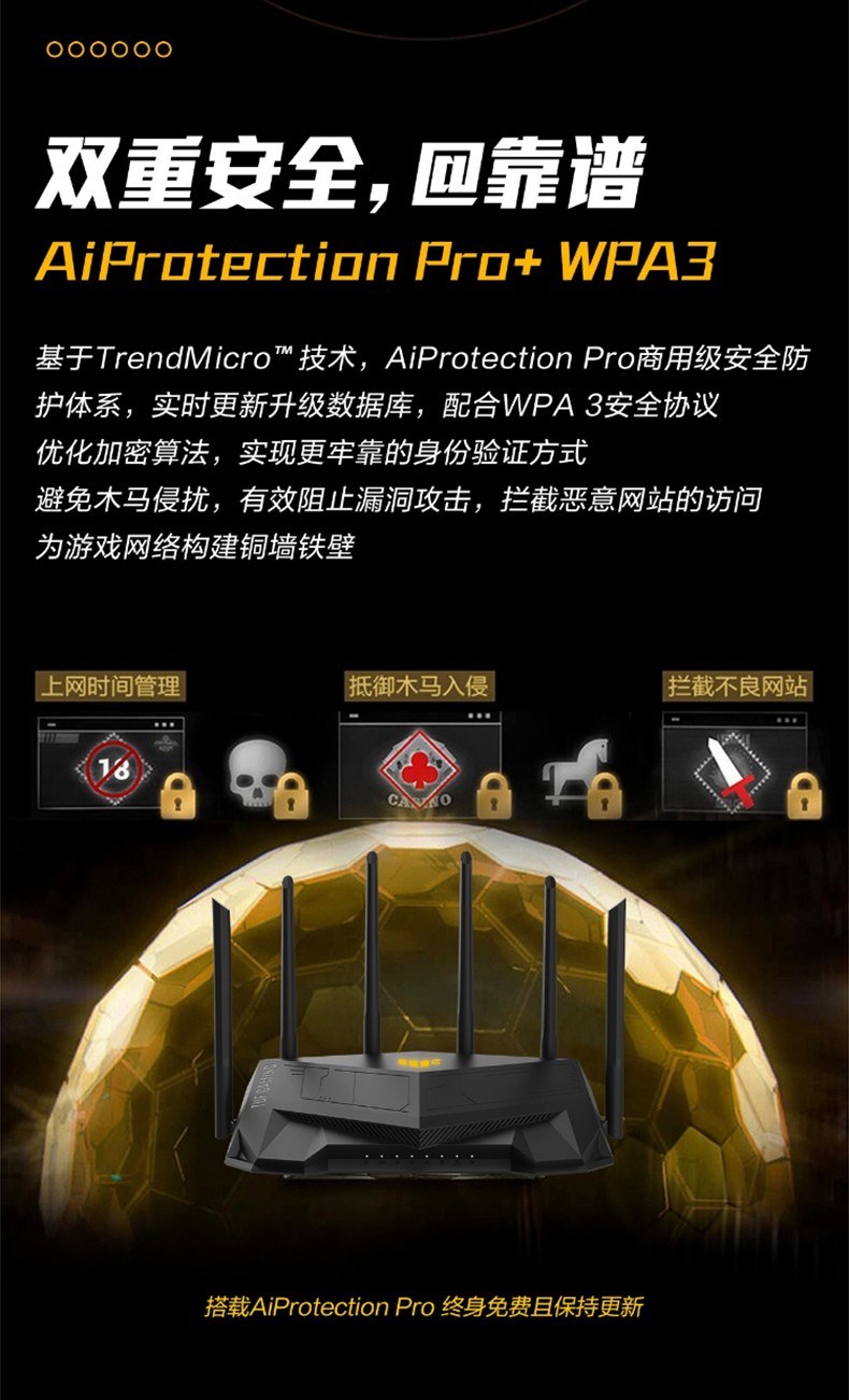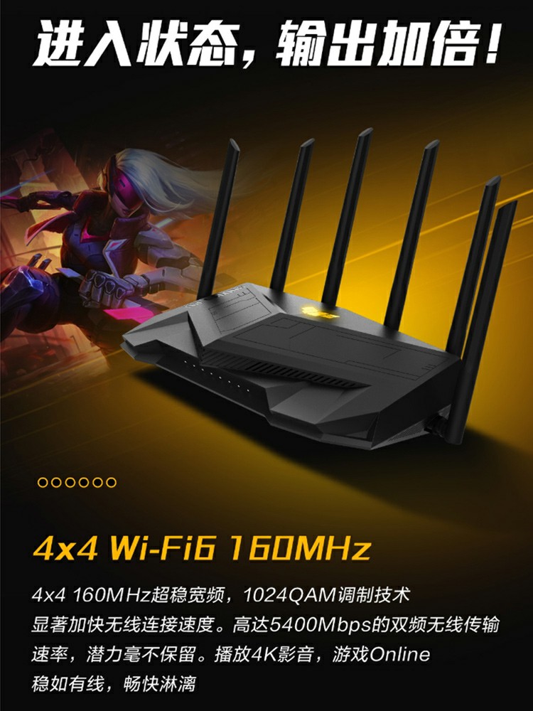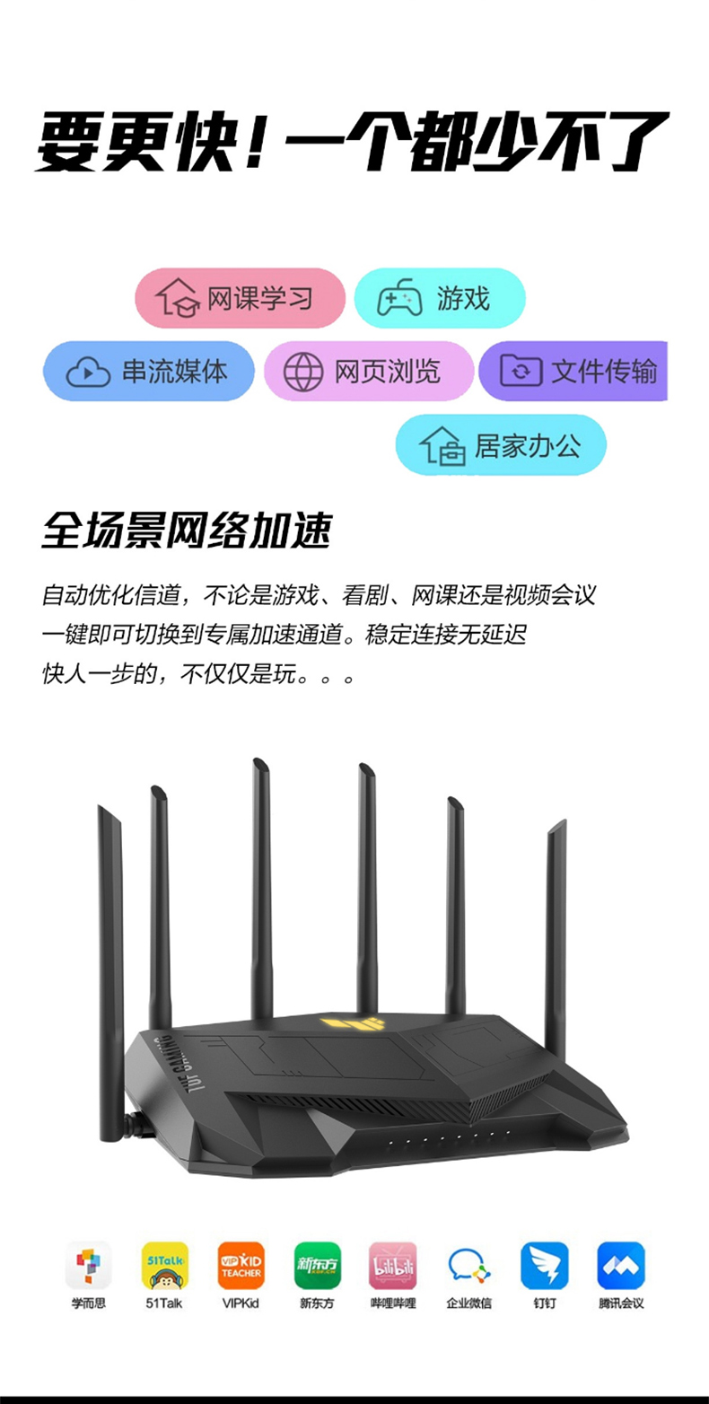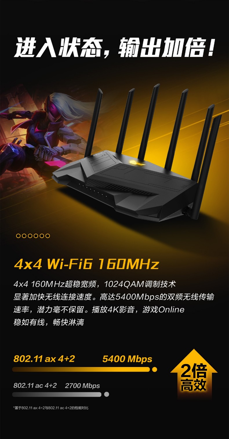 asus華碩TUFGAMINGAX5400穿墻王高速wifi6AX3000升級(jí)版雙頻無(wú)線千兆企業(yè)級(jí)wifi家用游戲加速端口路由器 電競(jìng)網(wǎng)線版