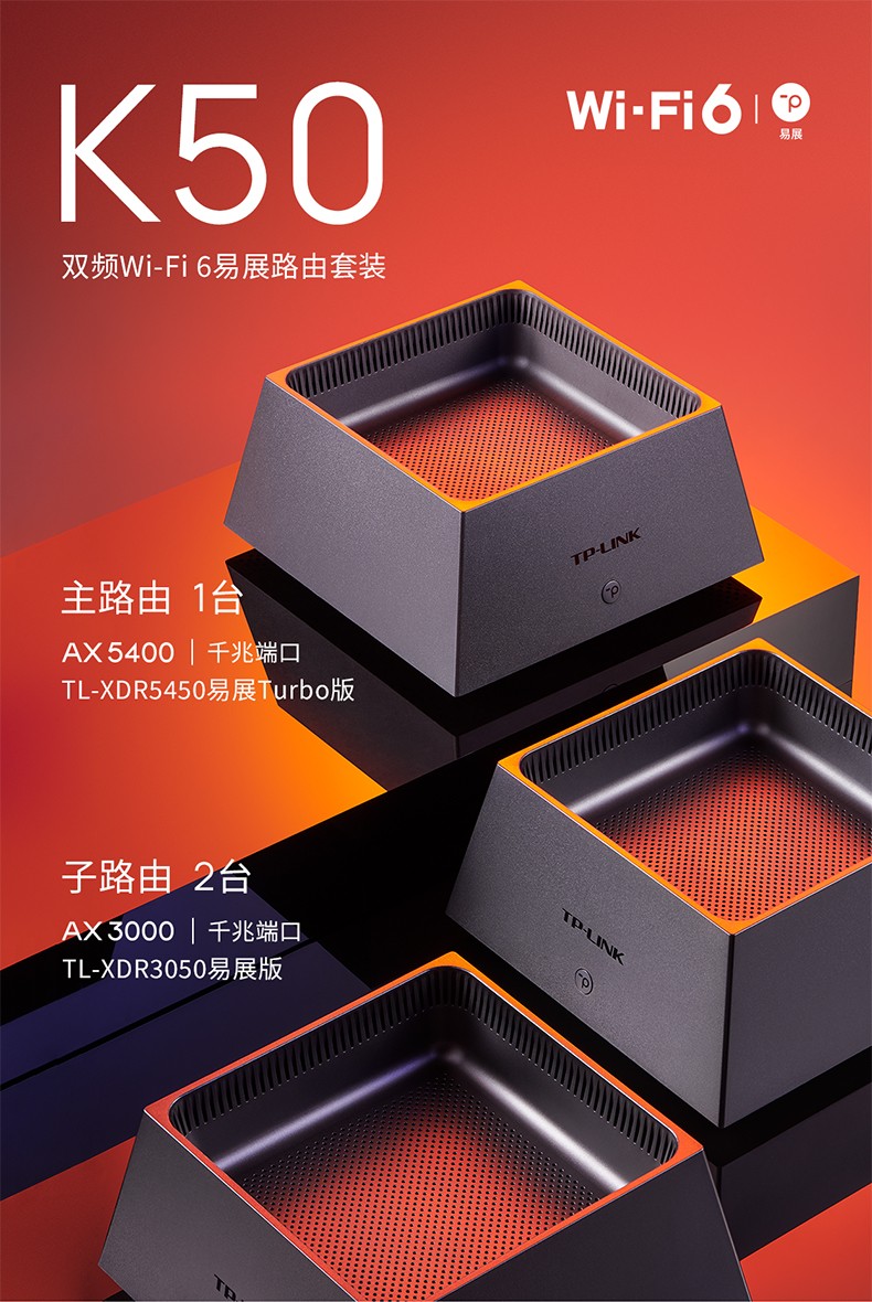 TP-LINK WiFi6全屋覆蓋套裝 AX5400+AX3000 mesh子母路由器 全千兆高速5G千兆端口tplink家用無線大戶型K50