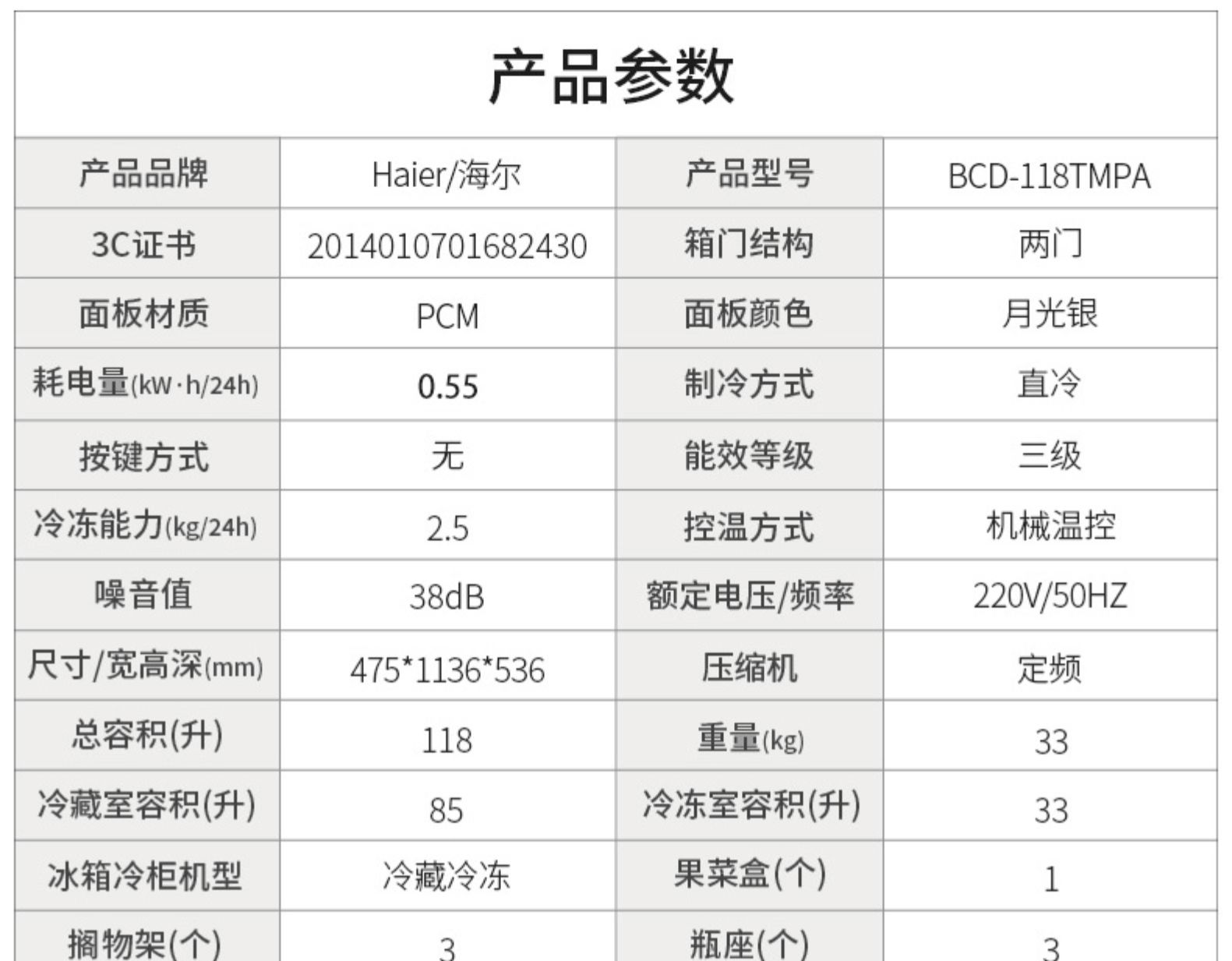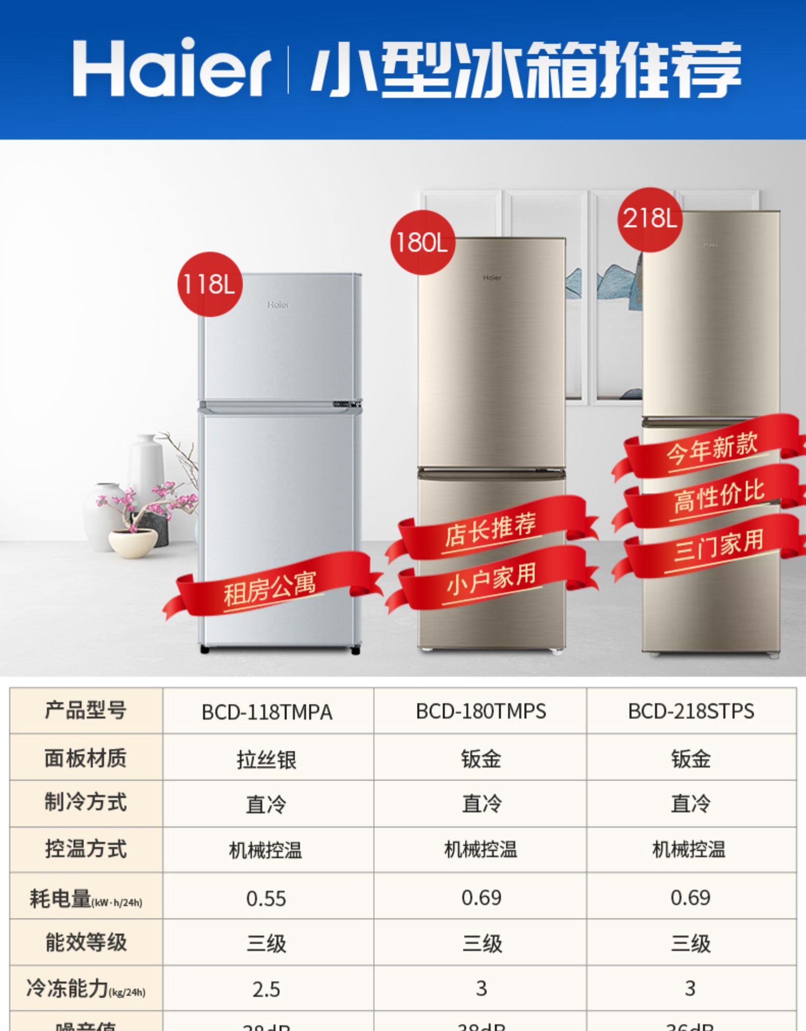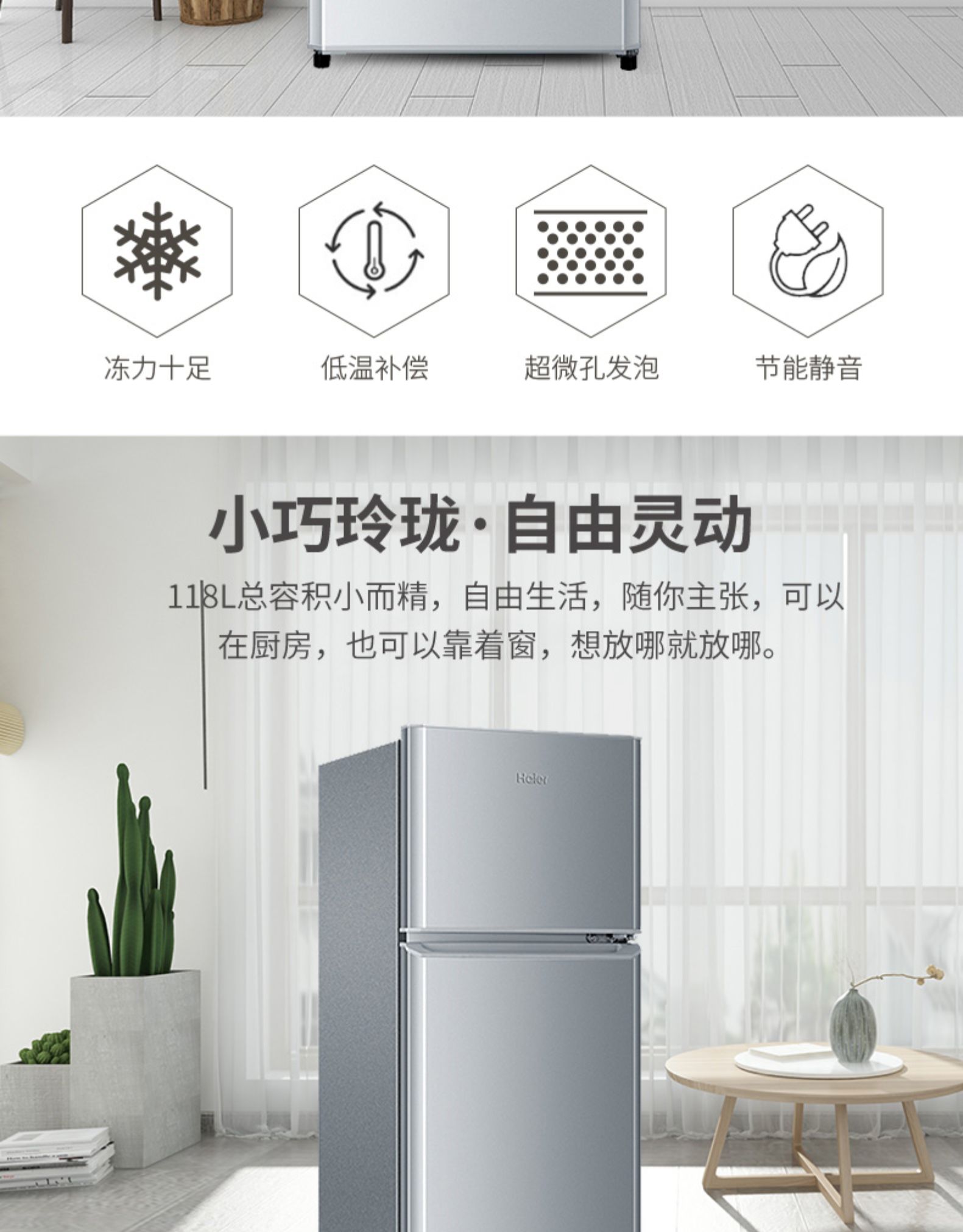 57升-海爾電冰箱兩門180升/118L雙開門家用小型宿舍租房節(jié)能官方旗艦店