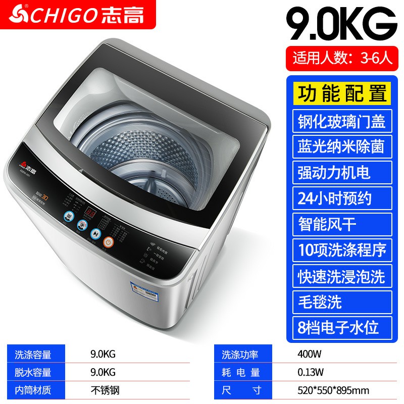 9.0-志高7.5KG/8.5洗衣機全自動家用小型宿舍嬰兒童迷你烘干洗脫一體