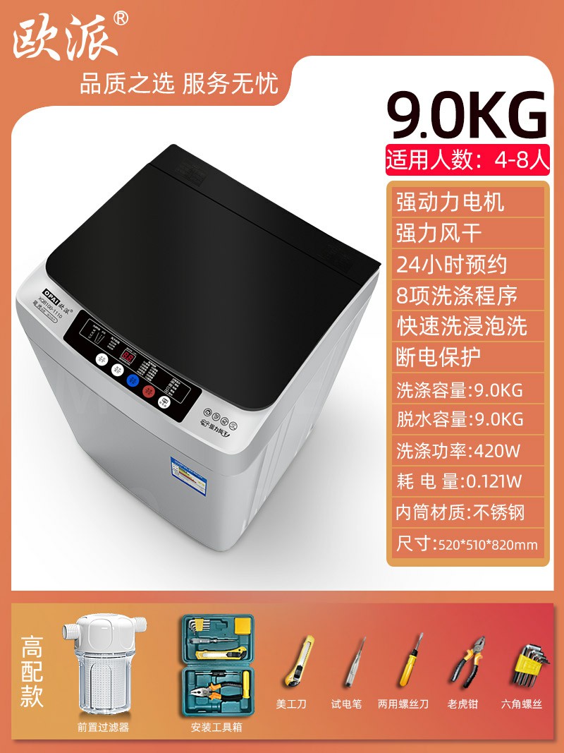 9kg-高配工具款-歐派洗衣機全自動波輪10公斤租房家用小型迷你嬰兒烘干脫水一體機
