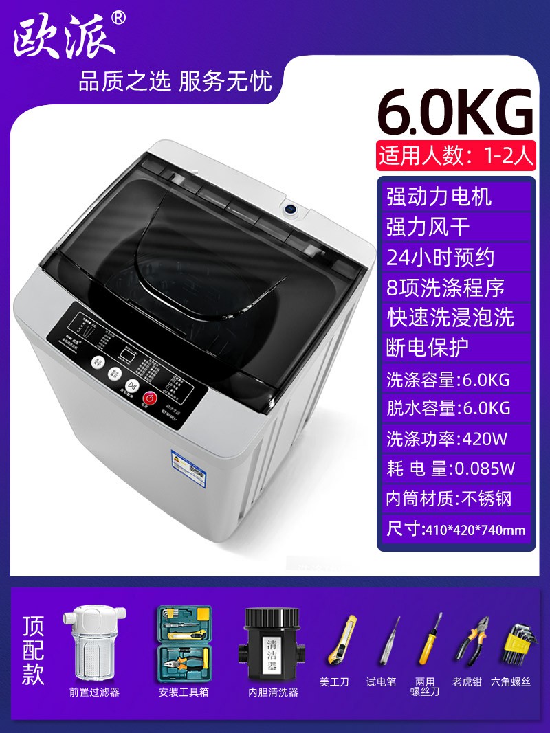 6.0kg-頂配工具款-歐派洗衣機全自動波輪10公斤租房家用小型迷你嬰兒烘干脫水一體機