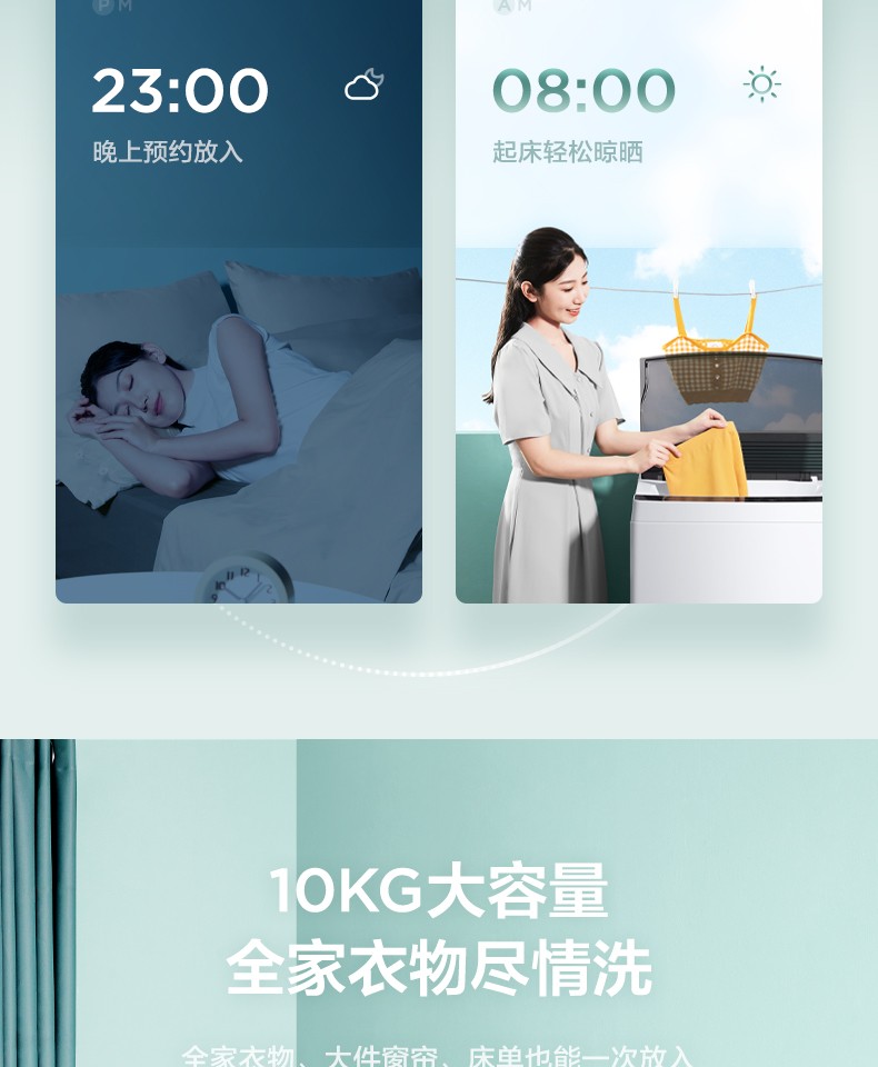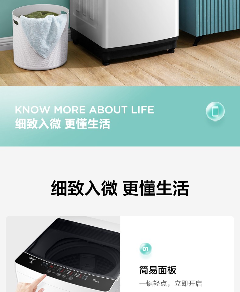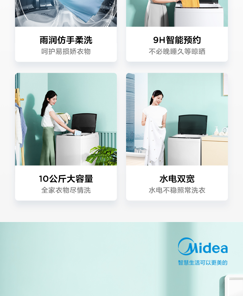 [隨心洗]美的官方旗艦10kg全自動(dòng)大容量家用洗脫一體波輪洗衣機(jī)