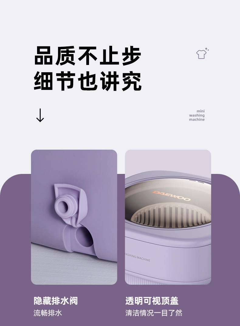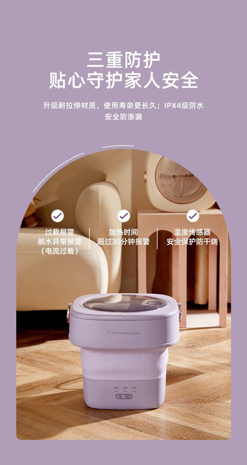 灰藕紫-大宇折疊洗衣機(jī)迷你洗衣機(jī)內(nèi)衣內(nèi)褲洗襪子神器小型懶人專用清洗機(jī)